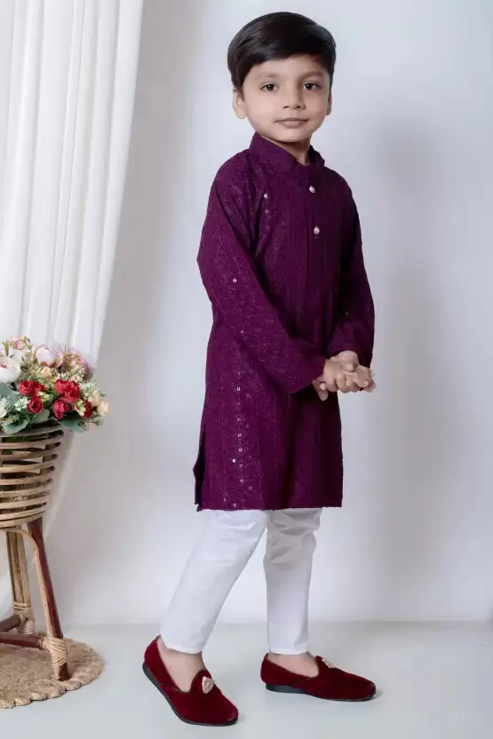 Boys Festive & Party Kurta and Pyjama Set (Purple Pack of 2) quantity