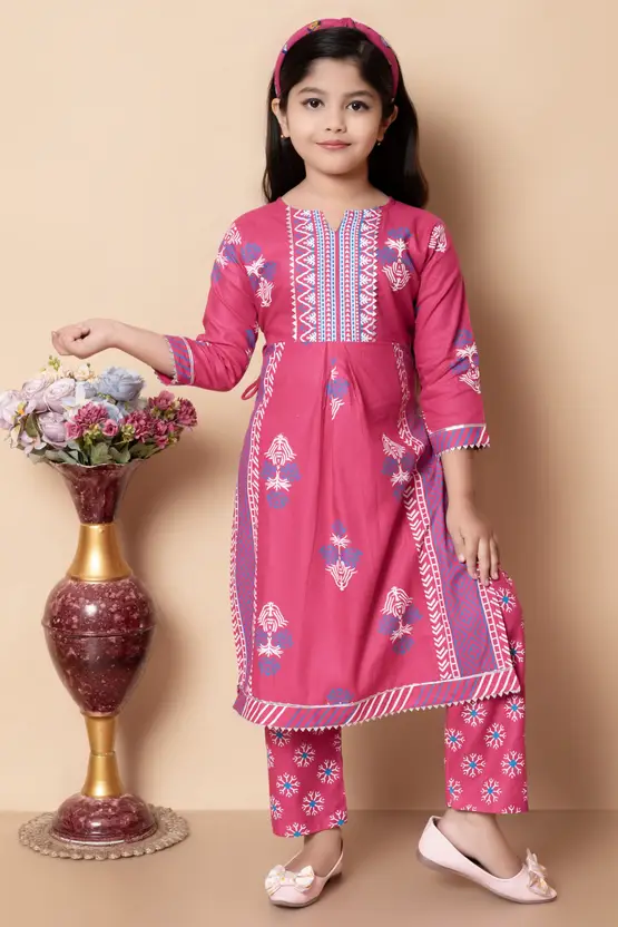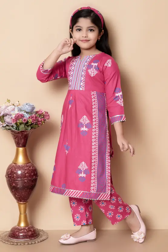 Girls Festive & Party Kurta and Pyjama Set (Multicolor Pack of 1)