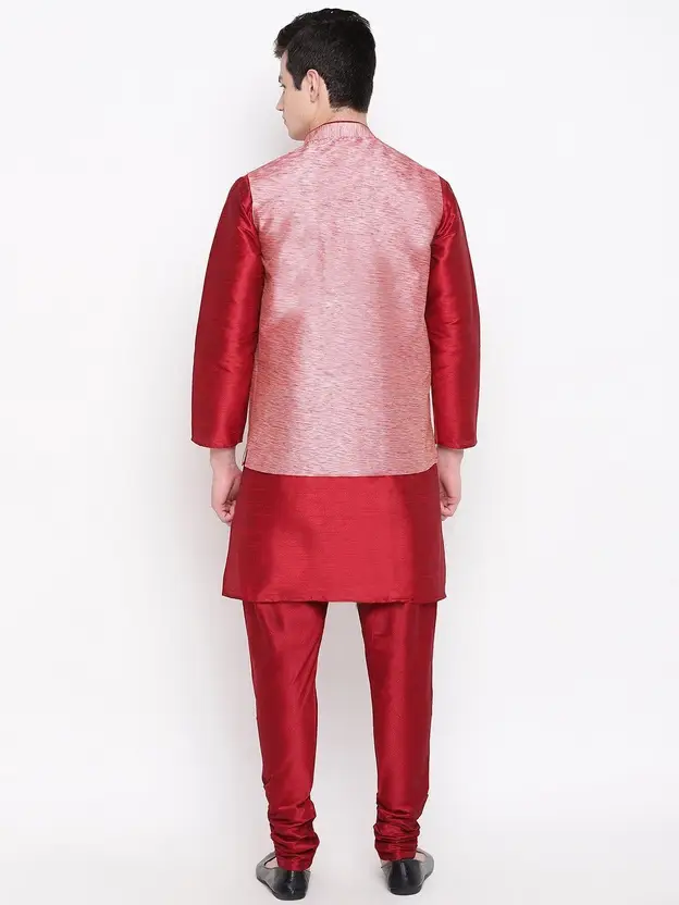Men Pure Silk Kurta Churidar Ethnic Jacket Set