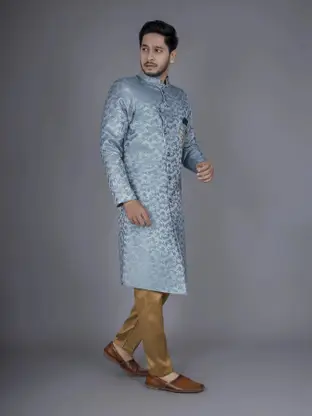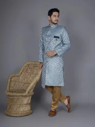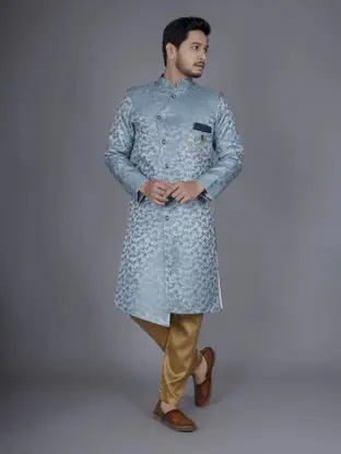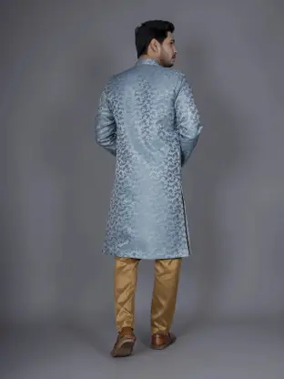 Men Striped Zip Neck Cotton Blend White, Dark Blue T-Shirt