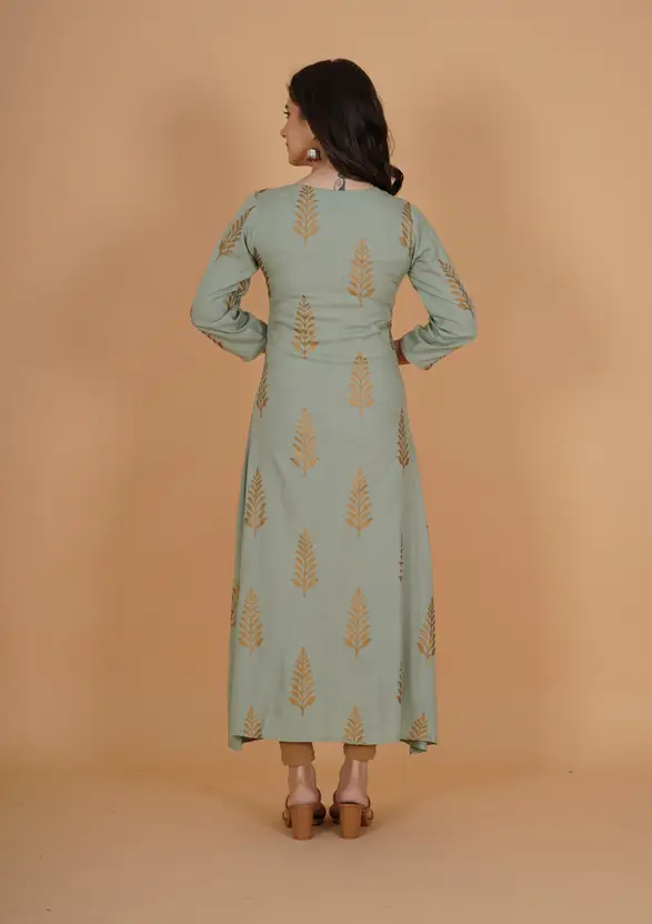 Viscose Rayon Stitched Anarkali Gown (Green)