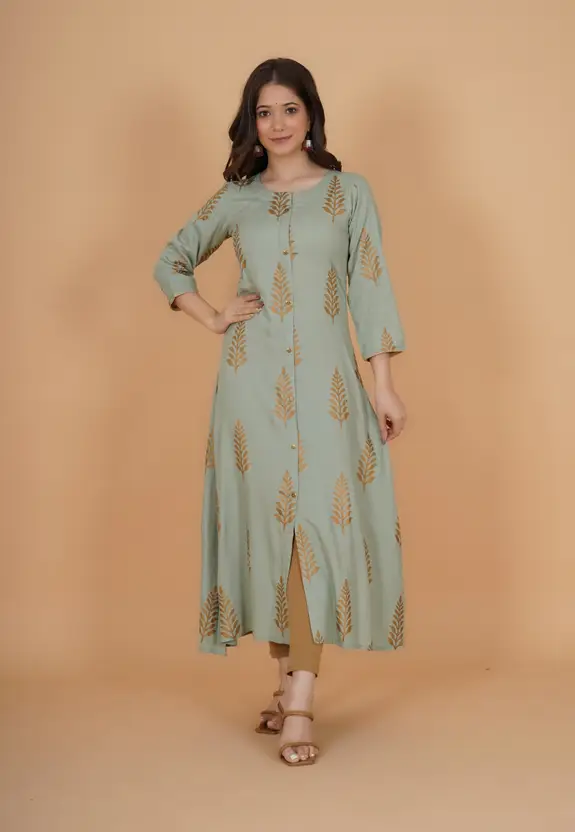 Viscose Rayon Stitched Anarkali Gown (Green) quantity