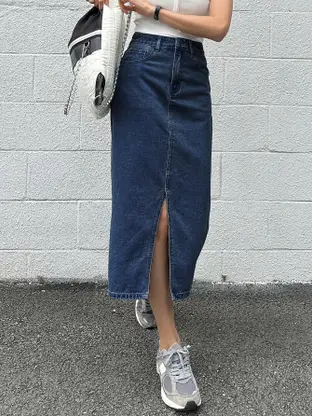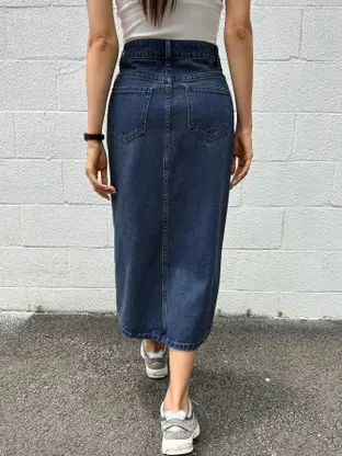 Women Solid Pencil Blue Skirt quantity