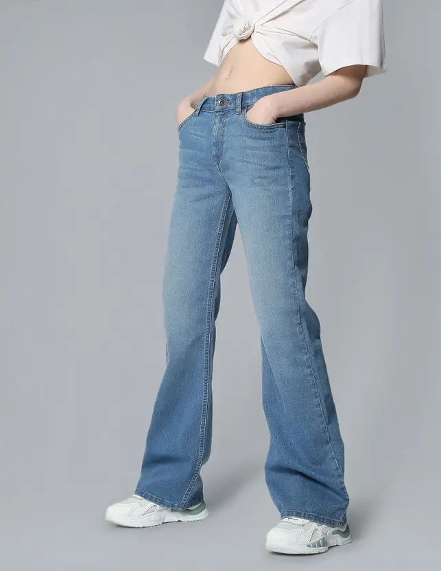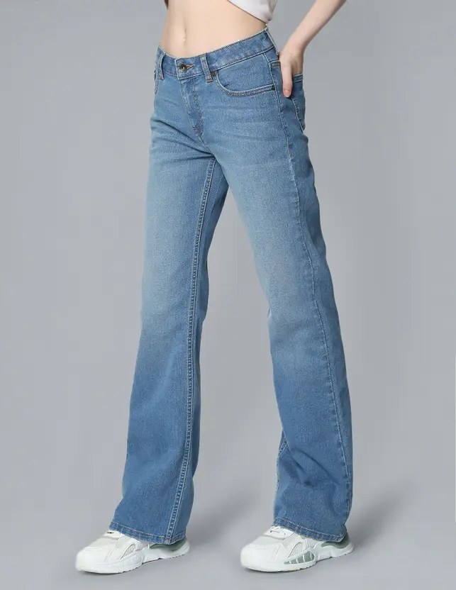 Women Boot-Leg Mid Rise Blue Jeans