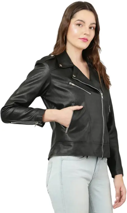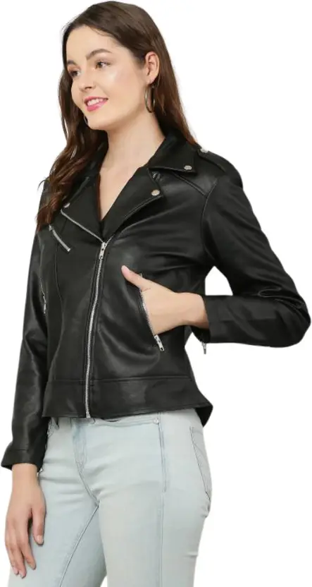 Women Solid Biker/Riding Jacket quantity
