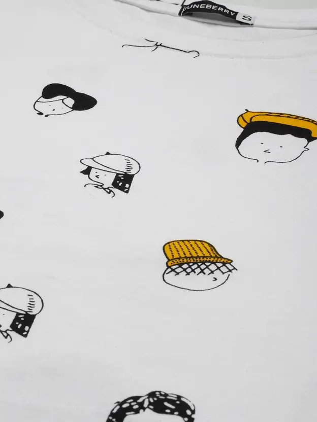 Women Printed Round Neck Pure Cotton White T-Shirt quantity