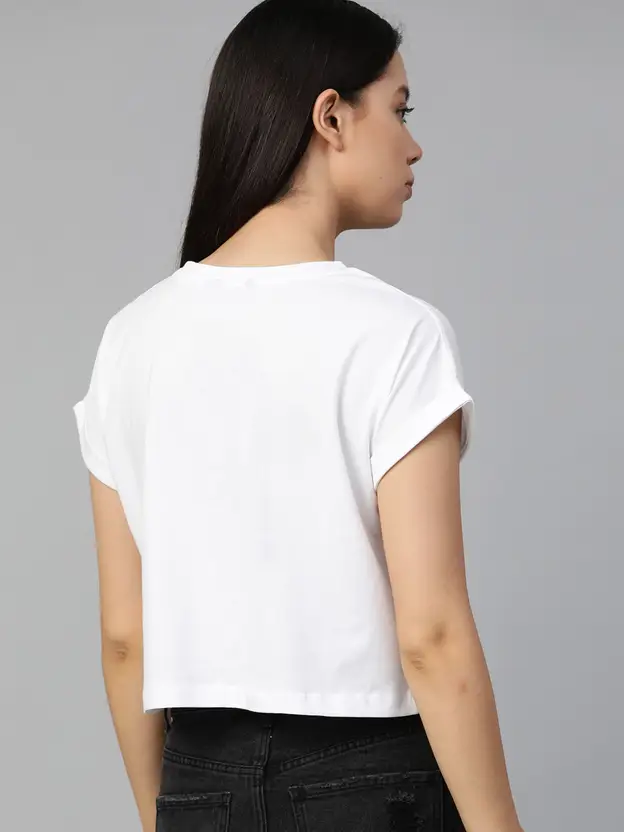 Women Solid Round Neck Pure Cotton White T-Shirt